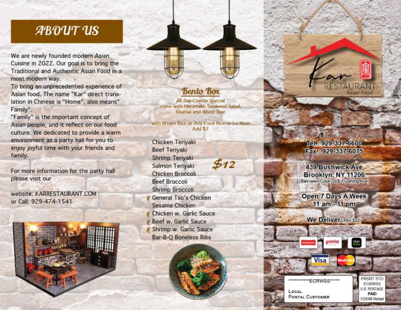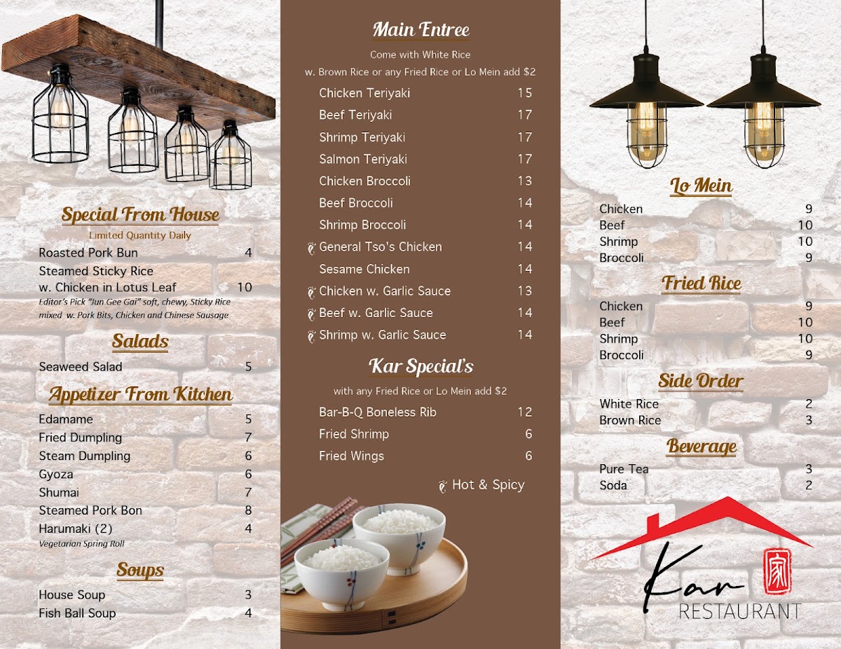 Located in the heart of Brooklyn, Kar Restaurant offers a vibrant menu that blends traditional and contemporary flavors, creating a unique dining experience. Whether you’re in the mood for comforting classics or something with a bit more flair, the Kar Restaurant Menu has something to satisfy every palate. You’ll find a variety of carefully crafted dishes, from savory appetizers to hearty mains, all made with fresh, high-quality ingredients. Each dish is a reflection of the restaurant's commitment to bold flavors and satisfying meals that leave you coming back for more. Whether you’re dining with friends or enjoying a cozy meal alone, the menu is designed to cater to a wide range of tastes, ensuring that everyone leaves happy.